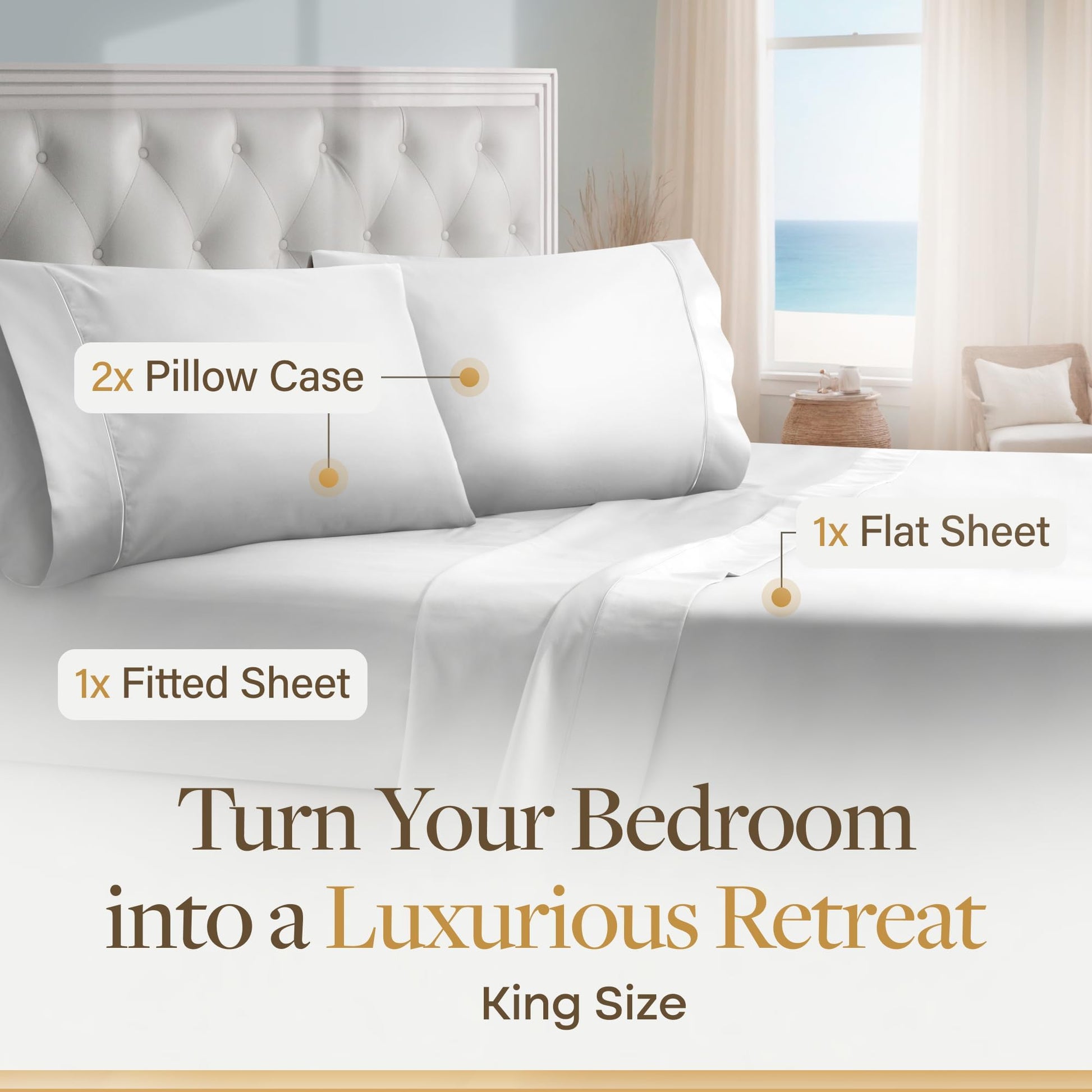 - Easy Care: Machine wash these white sheet set king size in cold water with a gentle cycle using a mild detergent, and tumble dry on low heat or delicate setting to maintain their softness and quality. All our sheet set is proudly OEKO-TEX certified and comes packed in reusable cotton bags, showcasing our commitment to both quality and sustainability.