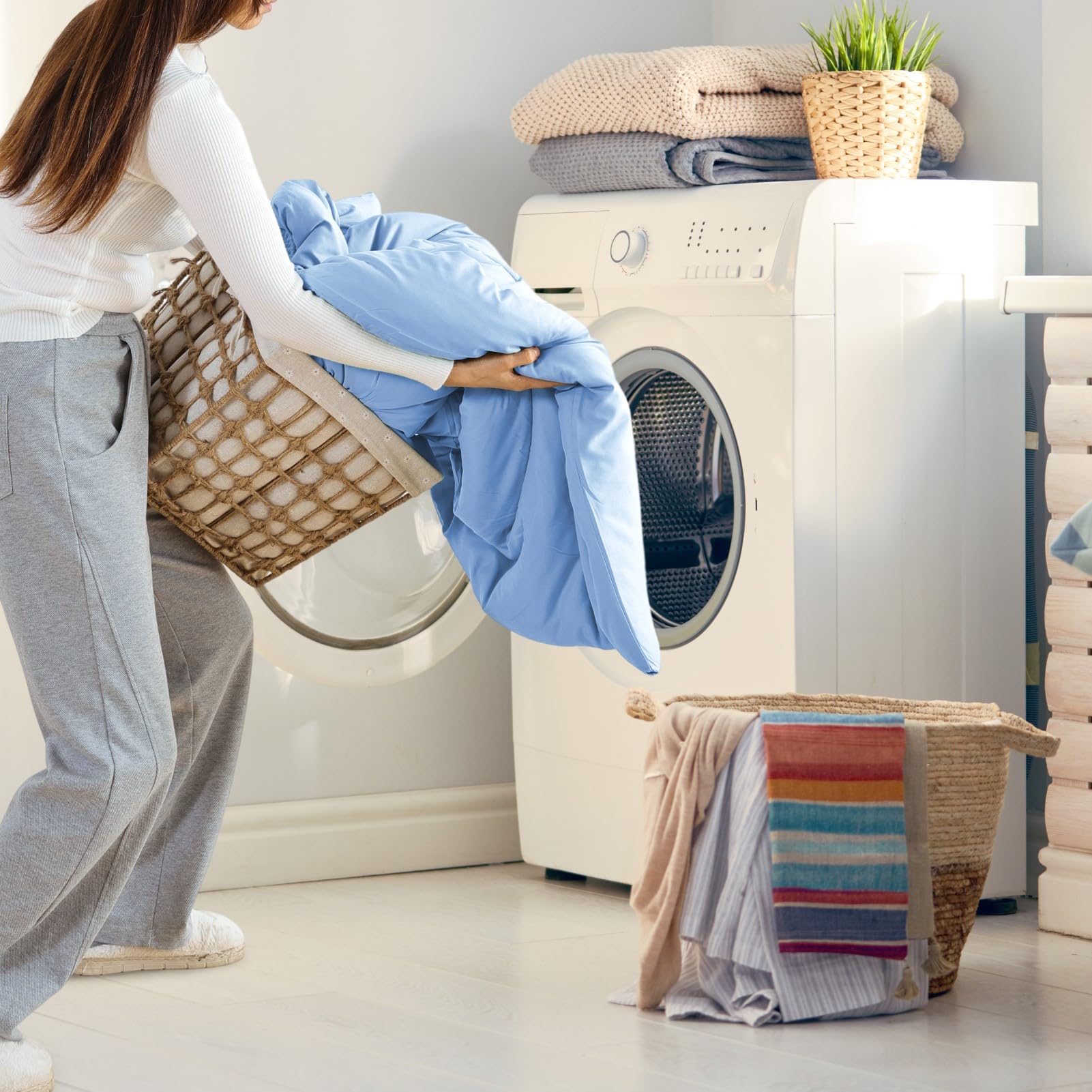 - Easy to Wash and Clean Blue Comforter Set Queen: Machine wash in a gentle cycle with cold water, tumble dry on low heat if needed. Do not bleach. You can keep the blue bedding looking like new with minimal effort, making it good for busy lifestyles